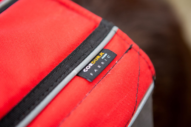 67, що, попри те, що він дійсно гнучкий, тканина Cordura® була обрана, оскільки вона також зносостійка, стійка до розривів, проколостійка, стійка до стирання і, зрозуміло, водонепроникна.