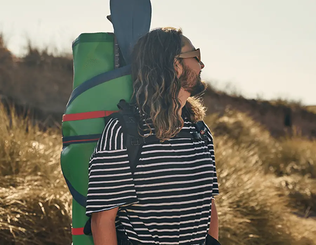 Ця каркасна система означає, що ви можете від'єднати задню частину сумки, прикріпити SUP та насос і налегку вирушити в дорогу.